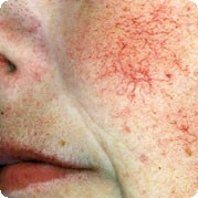 Collections of small blood vessels, particularly on the face are known as telangiectasia or spider veins. They usually have vessels radiating out from a central point like a spider’s legs (hence the name) Although harmless they can be very disfiguring and people can be very self conscious about their appearance.